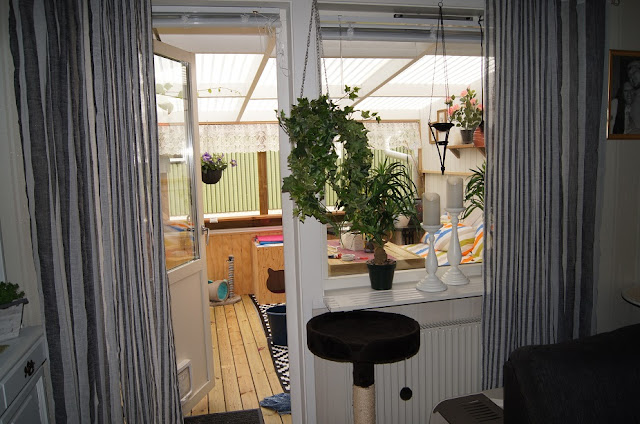 Fönstret i vardagsrummet har piffats upp med nya gardiner